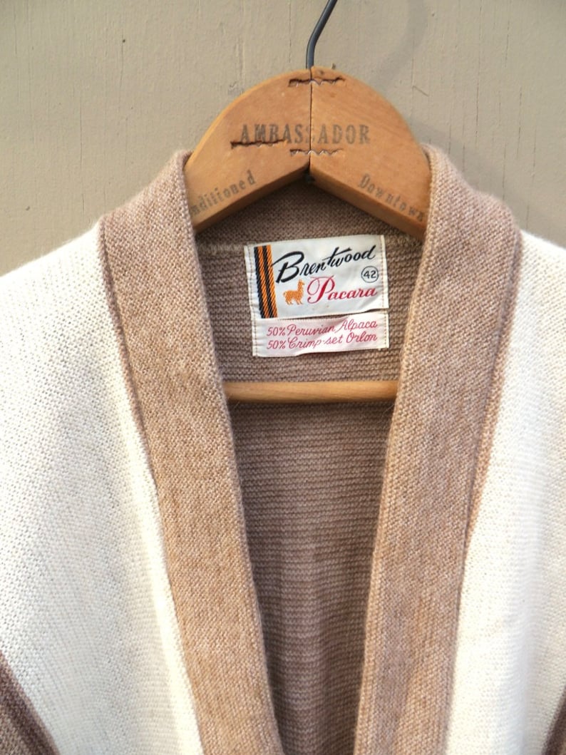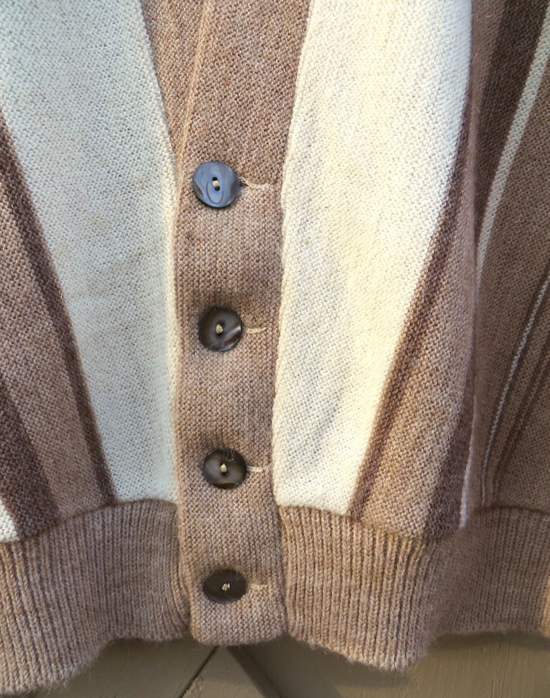 60s Vintage Neutral Tone Vertical Striped Peruvian Alpaca Blend Knit Cardigan Sweater Grandpa Sweaters Men