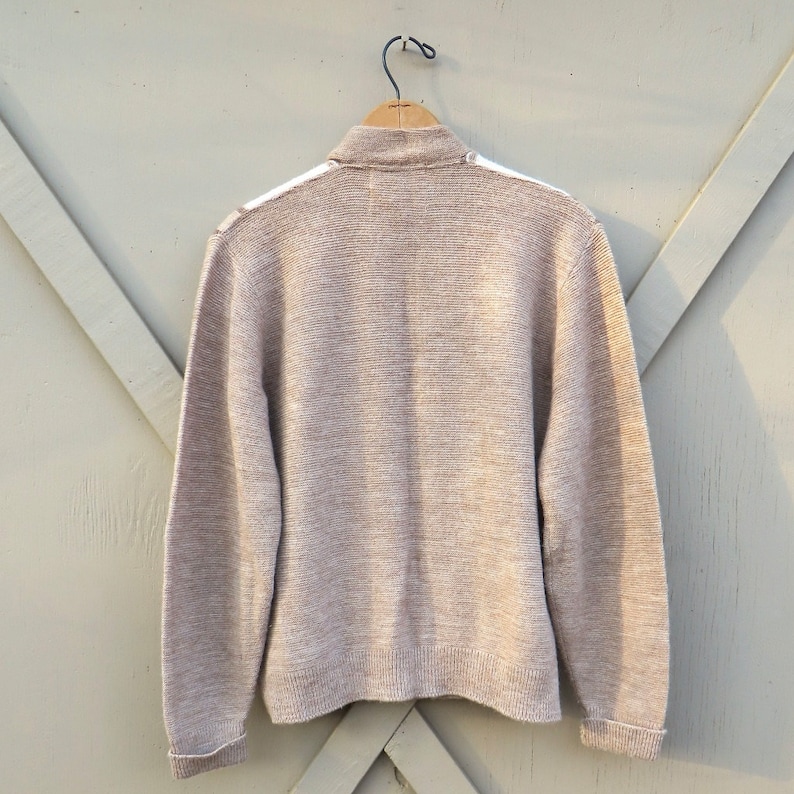 This 60s Vintage Neutral Tone Vertical Striped Peruvian Alpaca Blend Knit Cardigan Sweater fits like a well-loved favorite. The soft-washed, garment-dyed fabric brings extra coziness to your wardrobe while the relaxed fit makes it an excellent daily choice.