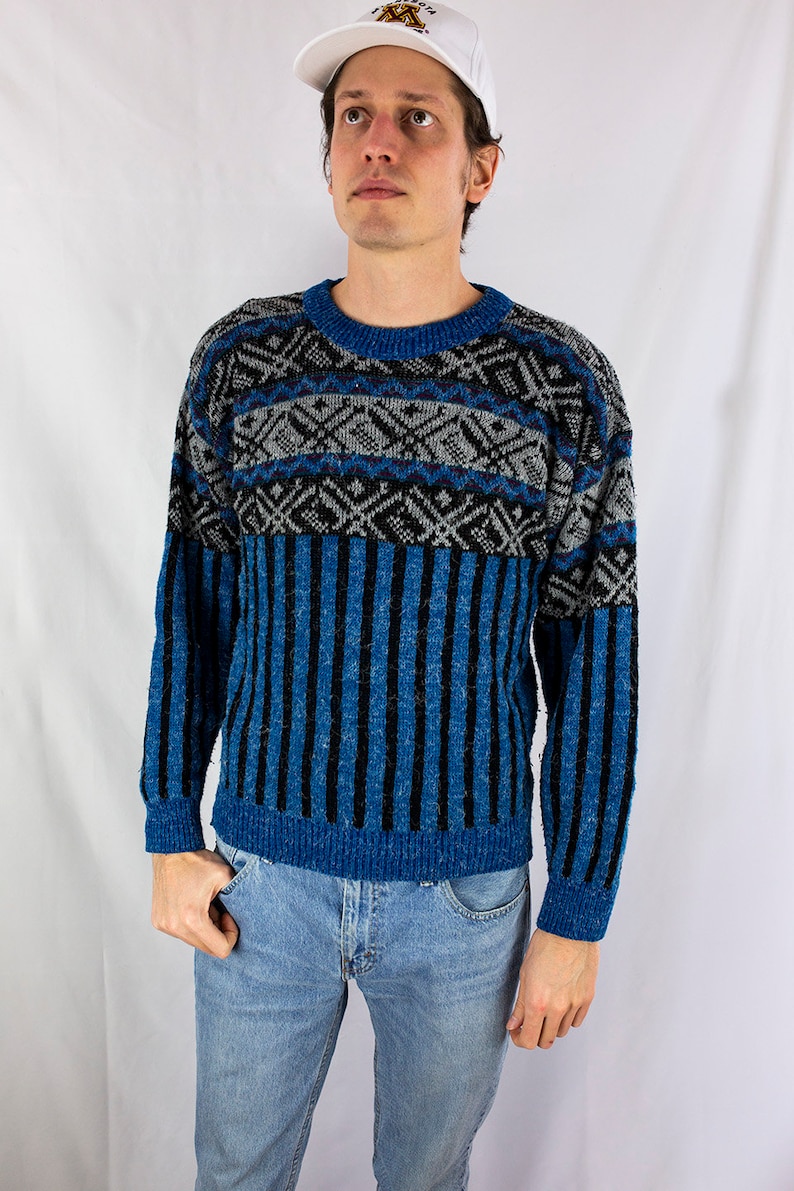 This Vintage 80s Geometric Abstract Sweater fits like a well-loved favorite. The soft-washed, garment-dyed fabric brings extra coziness to your wardrobe while the relaxed fit makes it an excellent daily choice.